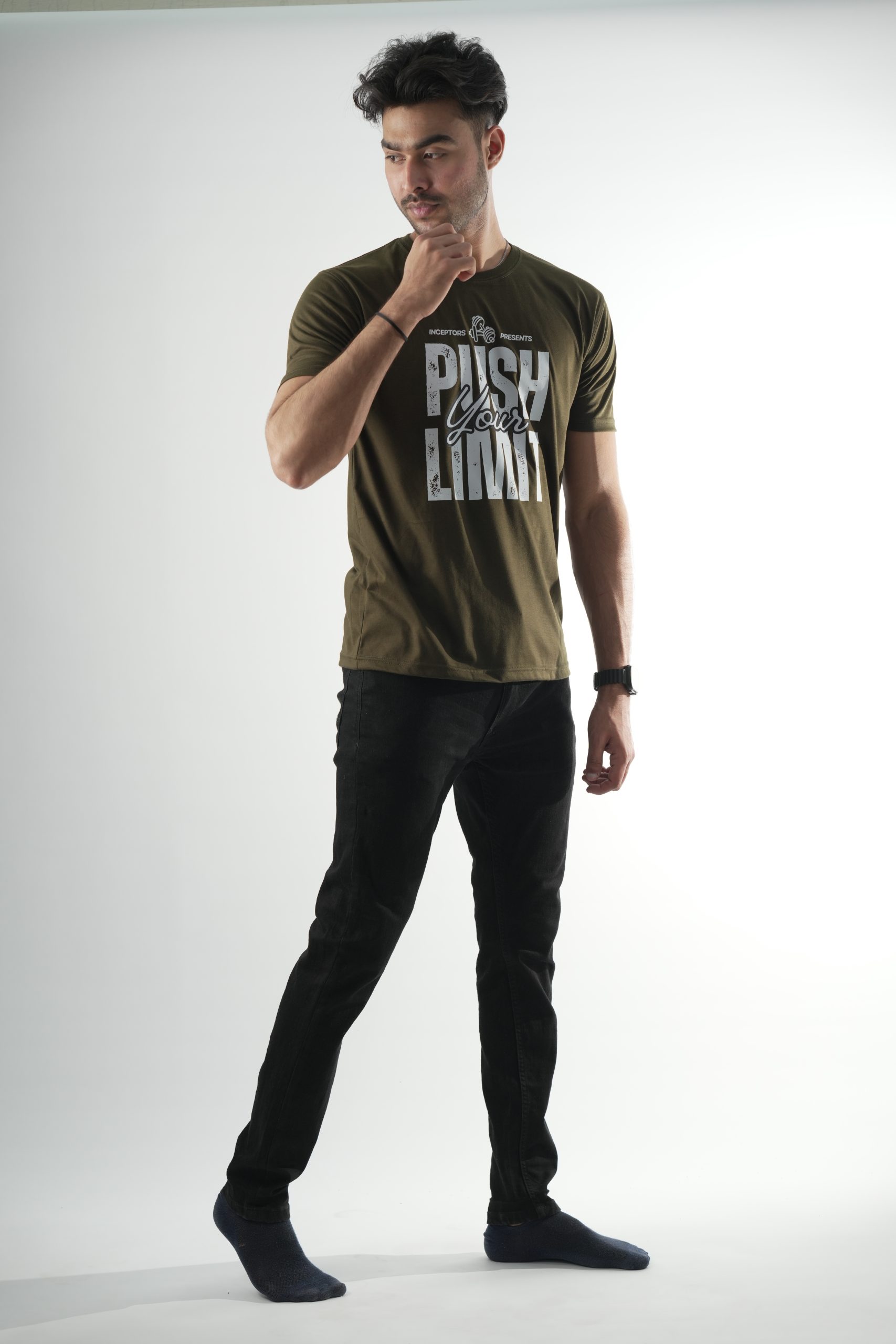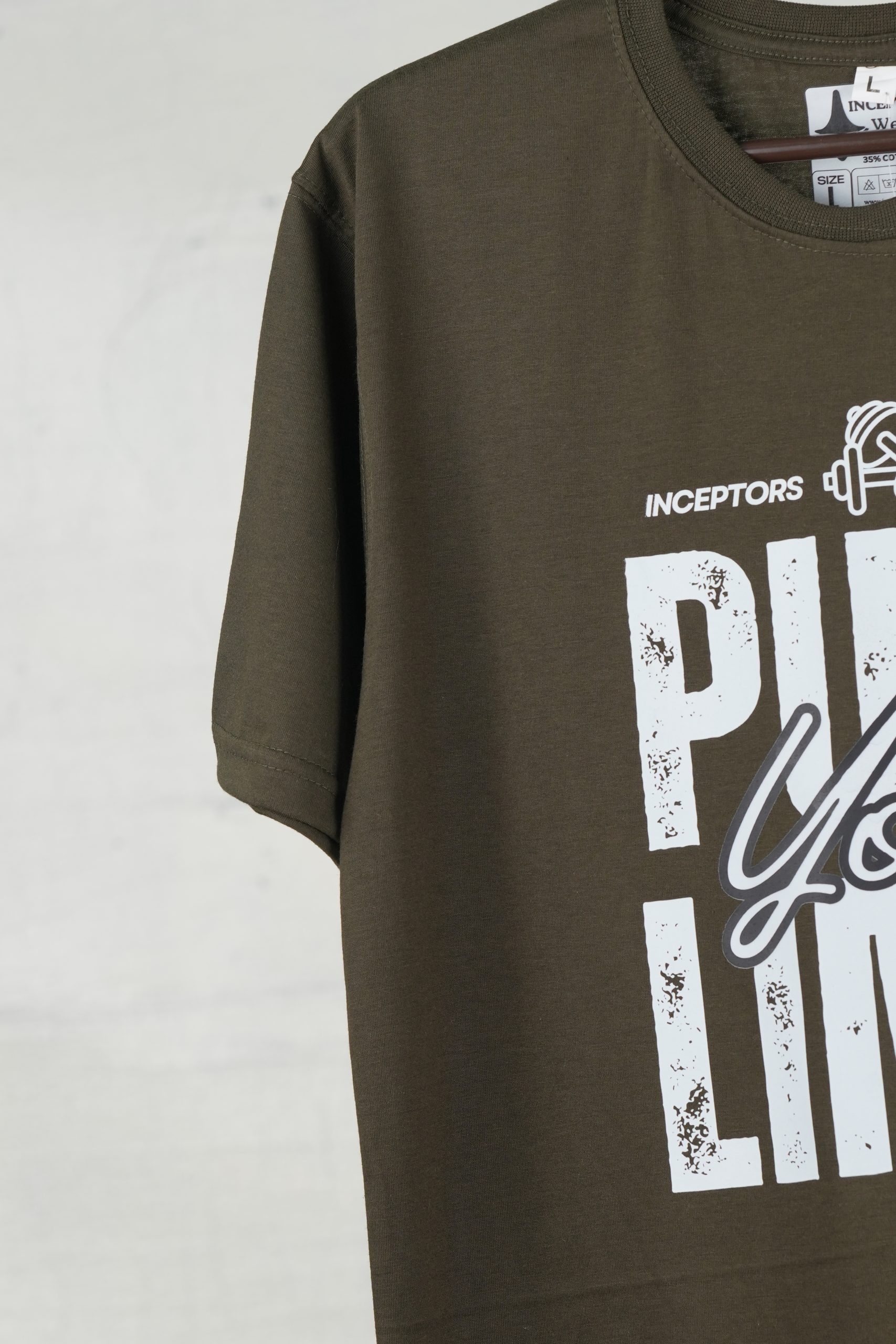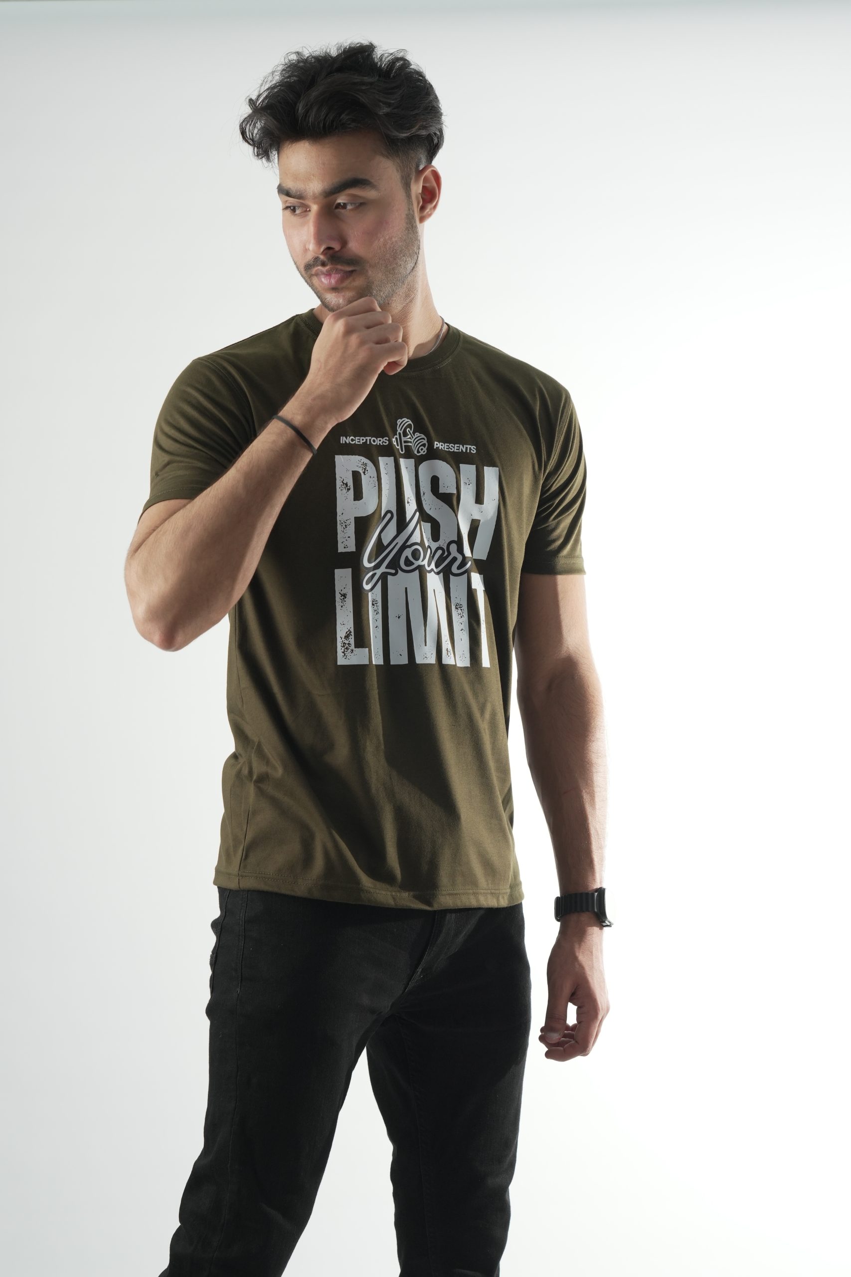 Unleash your potential with the Inceptors Wear Push Your Limit T-shirt. Crafted from premium quality fabric, this olive-green tee offers a perfect balance of style, comfort, and durability. Its bold and inspiring design makes it an ideal choice for gym enthusiasts and casual wear lovers alike. Whether you're hitting the weights or hanging out with friends, this tee keeps you motivated and looking fresh.